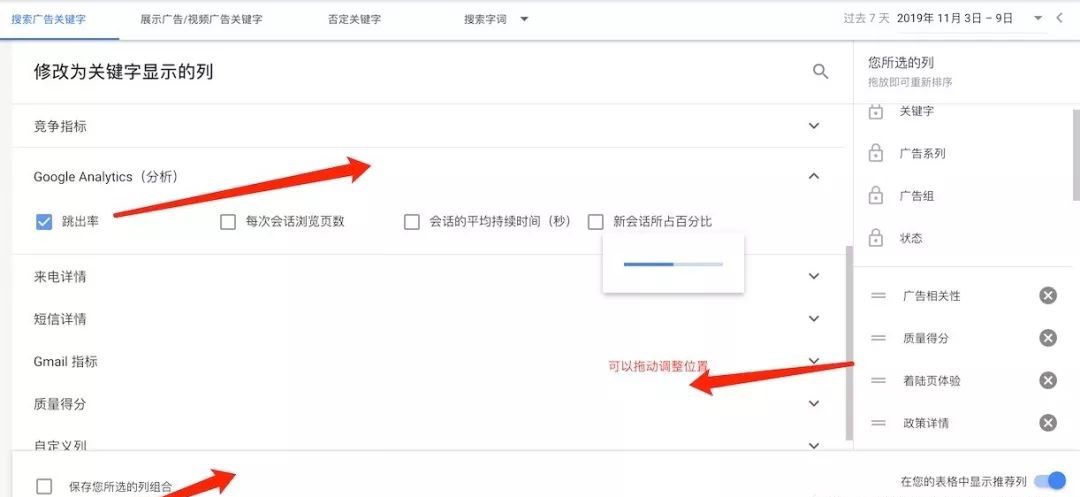其实在谷歌广告关键词的后台也可以看到跳出率这个指标,前提是你要把谷歌ads和谷歌分析关联起来,这样你在谷歌广告后台能看到谷歌分析的一些指标,同样你在谷歌分析后台能看到谷歌广告的表现。